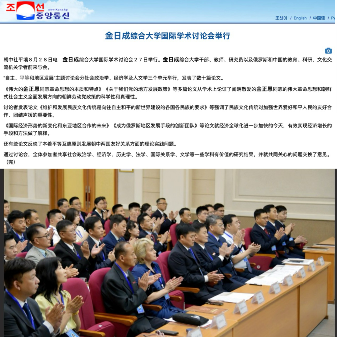 2025年8月25日—9月1日,应朝鲜金日成综合大学的邀请,太阳集团1088vip东北亚研究中心副主任张慧智教授、王箫轲教授、金慧贞老师出访朝鲜,参加金日成综合大学举办的“自主与平等、地区发展”国际学术研讨会。