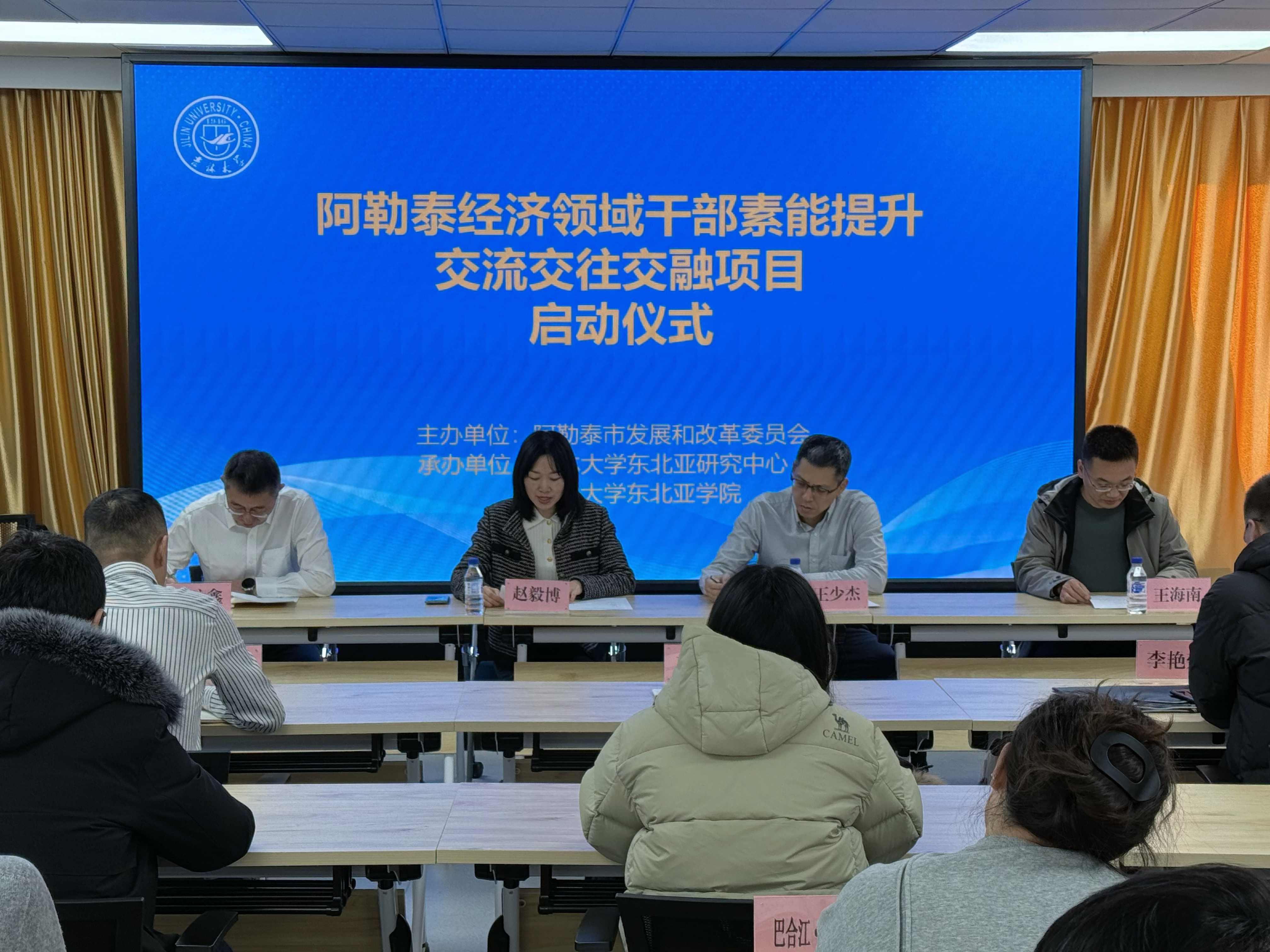 2025年12月3日,由太阳集团1088vip东北亚研究中心、太阳集团1088vip举办的“阿勒泰经济领域干部素能提升交流交往交融项目”培训班开班仪式在东荣大厦隆重举行。阿勒泰地区发展和改革委员会副主任王少杰、阿勒泰地区财政局副局长刘咏鑫,太阳集团1088vip太阳集团1088vip党委书记赵毅博出席仪式,开班仪式由阿勒泰市发展和改革委员会副主任王海南主持。